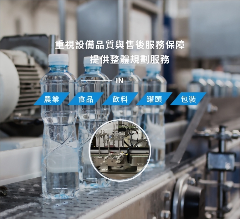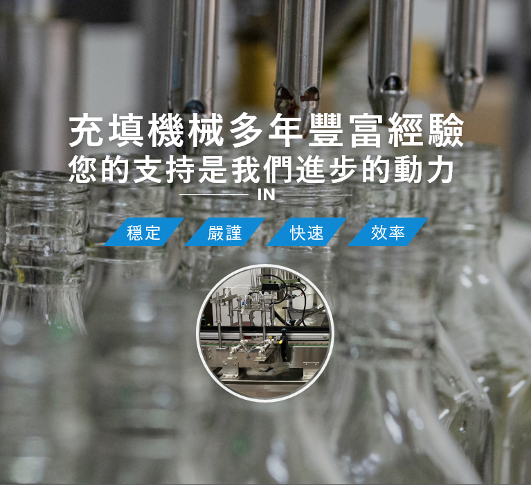 此機使用於玻璃瓶,PET瓶或PE瓶裝之充填旋蓋,可用於番茄醬(TOMATO KETCUP)果汁、礦泉水、牛奶、豆漿、酒類等液體之填充,速度可由每分鐘60瓶~120瓶依客戶需求調整。
